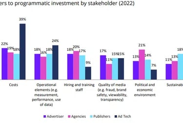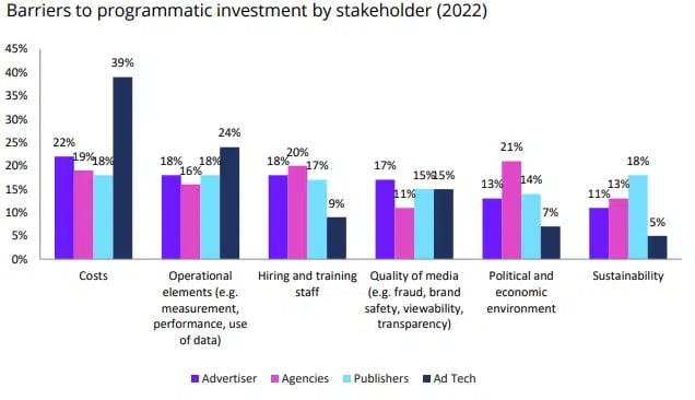 Dessa forma, os custos para esse processo acontecer de forma eficiente é apontado como uma das principais barreiras com relação aos investimos programáticos. Além de, claro, uma preocupação em garantir uma equipe qualificada e com as habilidades necessárias para cumprir com as funções operacionais de relatórios e análises que esse modelo de tratamento de dados requer.